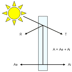 C) FACTOR DE ABSORCIÓN Fracción del haz energético absorbido por los cristales que forman el mismo acristalado. La energía absorbida sería reflejada hacia el exterior (Ae) y el interior (Ai) en cantidades variables que dependerán de las características de los cristales, de la velocidad del aire en el interior o en el exterior, así como de las temperaturas externa e interna.