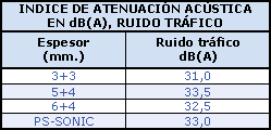 acústica es mejor que el de un vidrio monolítico de idéntico espesor.