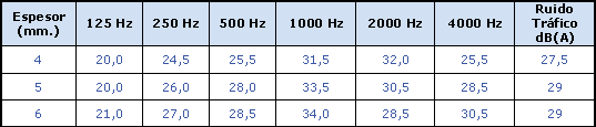 3) PROPIEDADES ACÚSTICAS Índice de atenuación en dB y dB(A), ruido de tráfico:
